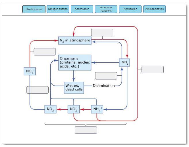 The Nitrogen Cycle | Earth Science | Visionlearning The nitrogen cycle is the set of biogeochemical processes by which nitrogen undergoes chemical reactions, changes form, and moves through difference reservoirs on Earth, including living organisms. Nitrogen is required for all organisms to live and grow because it is the essential component of DNA, RNA, and protein. However, most organisms ... Label the Nitrogen Cycle Diagram | Quizlet Nitrogen in air Location Term Nitrogen fixation: Lightning does some of the nitrogen fixing by breaking nitrogen gas apart and converting it into a usable form. Location Term Nitrates are also in fertilizers Location Term Nitrification- Bacteria in soil convert ammonia to nitrates which plants absorb Location Term The Nitrogen Cycle Game | Center for Science Education Nitrogen is an element that is found in both the living portion of our planet and the inorganic parts of the Earth system. The nitrogen cycle is one of the biogeochemical cycles and is very important for ecosystems. Nitrogen cycles slowly, stored in reservoirs such as the atmosphere, living organisms, soils, and oceans along its way.